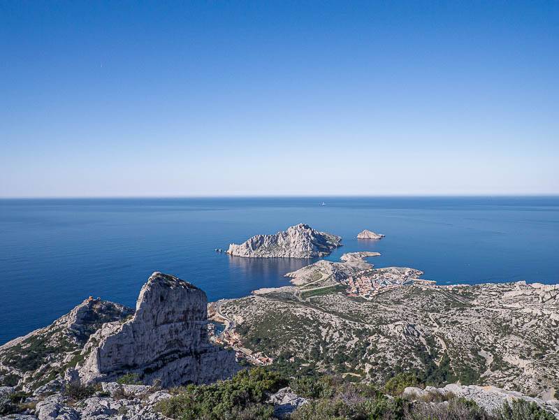 Le panorama des Goudes depuis le Rocher de Saint-Michel, Callelongue, l'île Maïre et le Cap Croisette (Calanques, les Goudes, Marseille 8ème, Bouches-du-Rhône – 07/03/14)