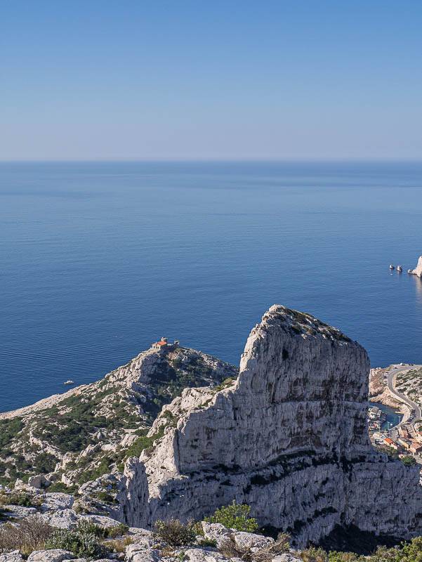 Le Rocher de Saint-Michel domine les Lames et le Rocher des Goudes, remarquer l'Ancien Sémaphore de Callelongue sur la gauche (Calanques, les Goudes, Marseille 8ème, Bouches-du-Rhône – 07/03/14)