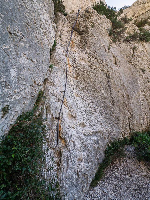 Le Pas inférieur de la Mounine, redouté et sécurisé par une rampes de fer scellée dans le rocher (Calanques, les Goudes, Marseille 8ème, Bouches-du-Rhône – 07/03/14)