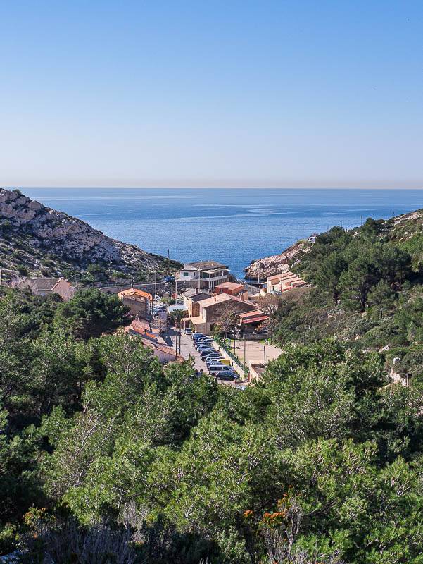 Le vieux chemin rocailleux monte pour passer sous l'ancien sémaphore et descend vers la Calanque de la Mounine. Un cairn marque le début de l'aventure et pour la première fois, l'esprit se prépare au parcours de l'aval d'un vallon parmi les plus sauvages des Calanques. Le Vallon de la Mounine comporte des passages d'escalades aériens…