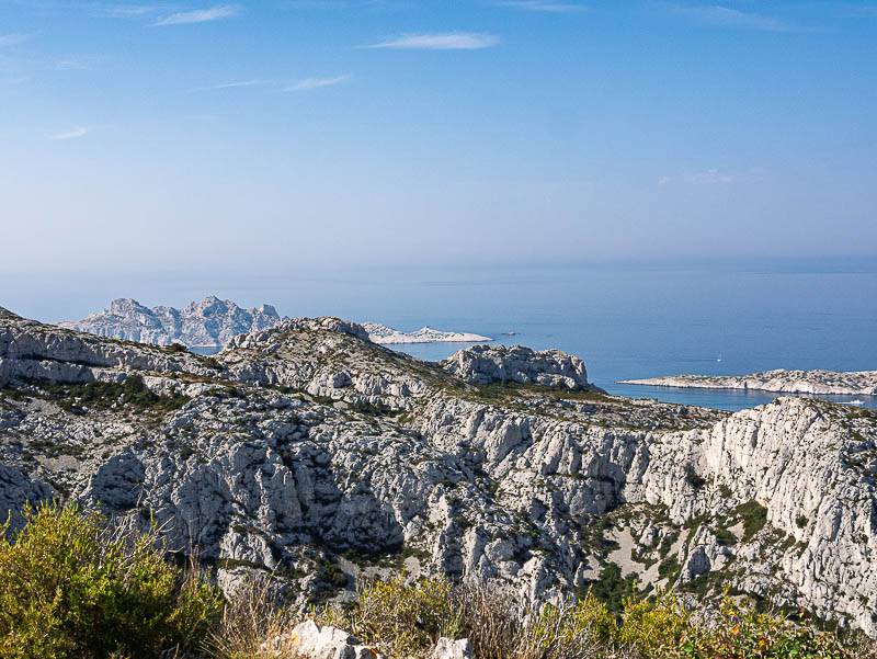 Les Têtes de Malvallon devant l'Île de Riou, vues depuis le Sommet Ouest de l'Homme Mort (Calanques, Les Goudes, Marseille 8ème, Bouches-du-Rhône – 13/06/14)