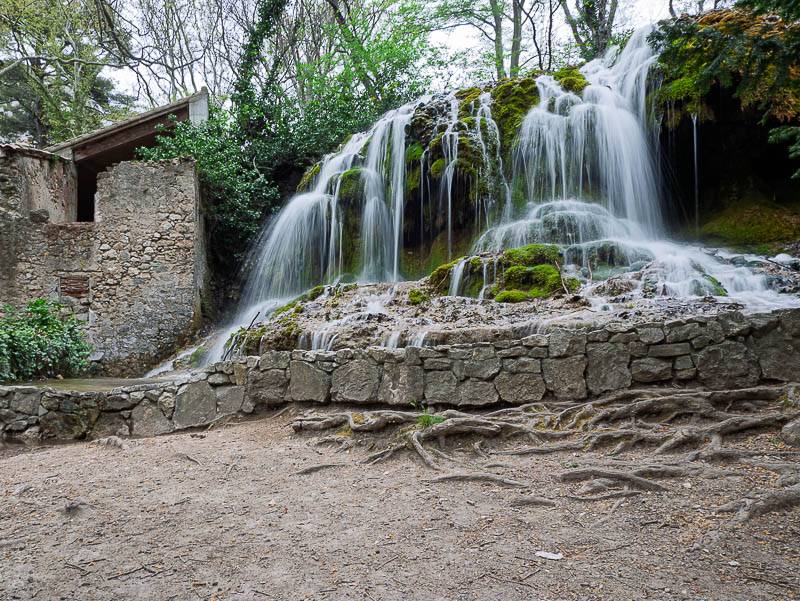 La cascade sur les pierres moussues de l'ancien Moulin de Cuges (Provence, Sainte-Baume, Gémenos, Bouches-du-Rhône, 16/04/15)